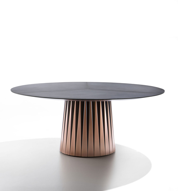 The every day terracotta vase is transformed into an esteemed steel and metal creation enormous in size dominating space with a distinct personality.