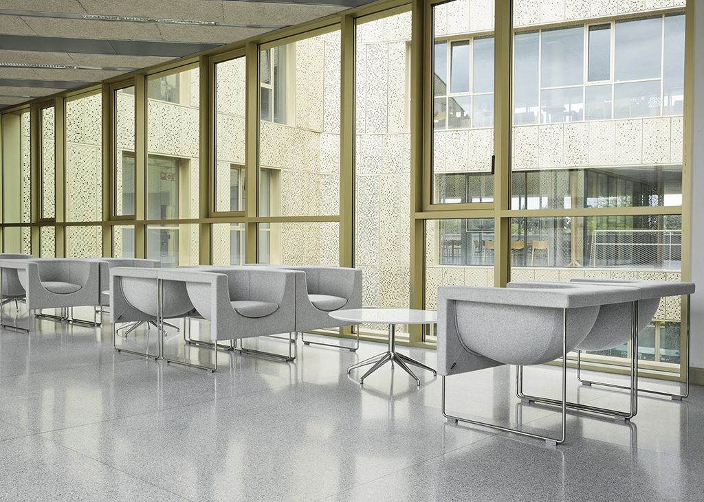 Another detail of the NUBE armchair is that it has a square upper view. Different armchairs can be combined turning between them. So the armchairs can be linked making straight lines or angles.