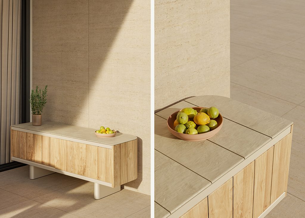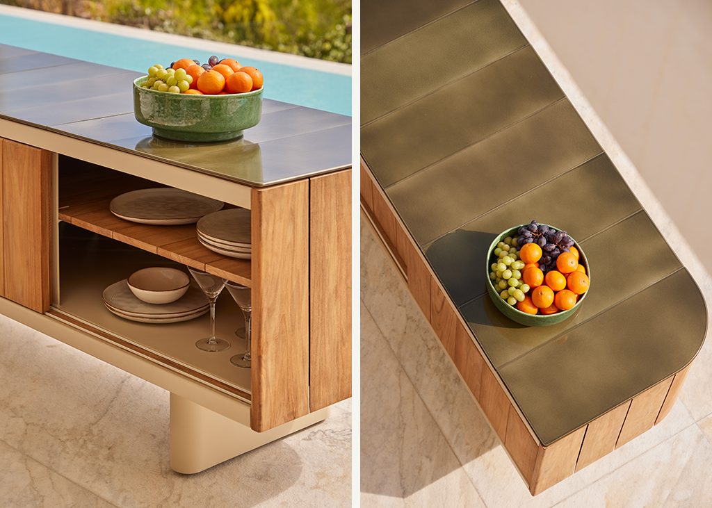 Atrio is one of those in charge of introducing a new concept and new materials that further enhance Punt's know-how. The solid FSC teak wood together with the glazed ceramic pieces that make up its top, generate a warm and refined combination that make it the perfect piece for homes, hotels and restaurants. Art, Craftsmanship and Design that embrace the outdoors.