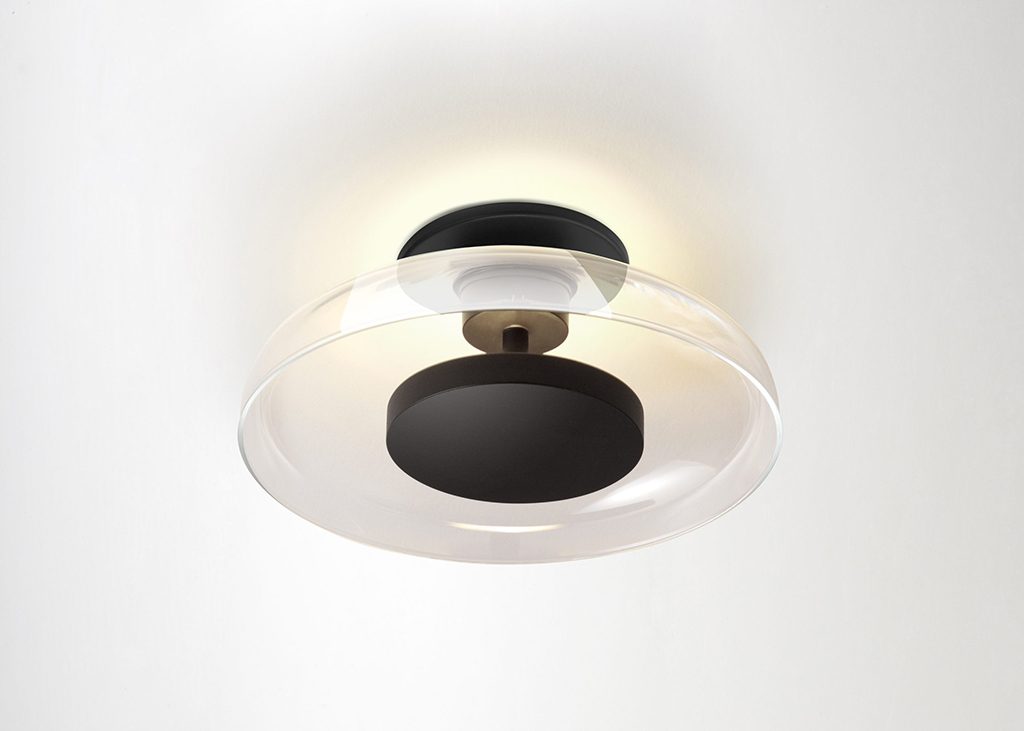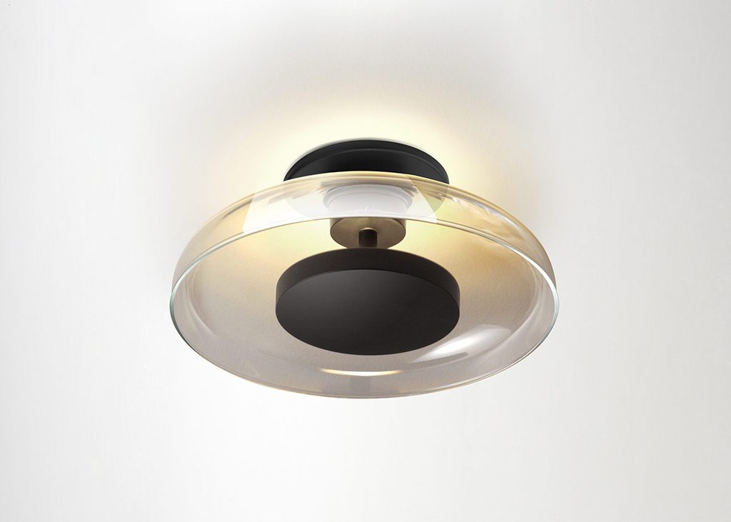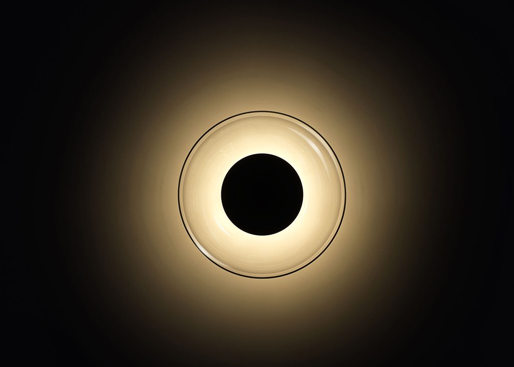 The Aura follows an emotional design, because of what glass means in the collective memory, as well as a rational and contemporary design because it draws on LED technology to achieve efficiency and subtlety. The opalescent, transparent, or coloured glass of its lampshade allows the light to bathe the wall and creates a luminous effect without harshness, while also generating a point of interest in the space.