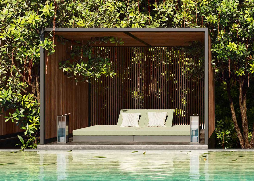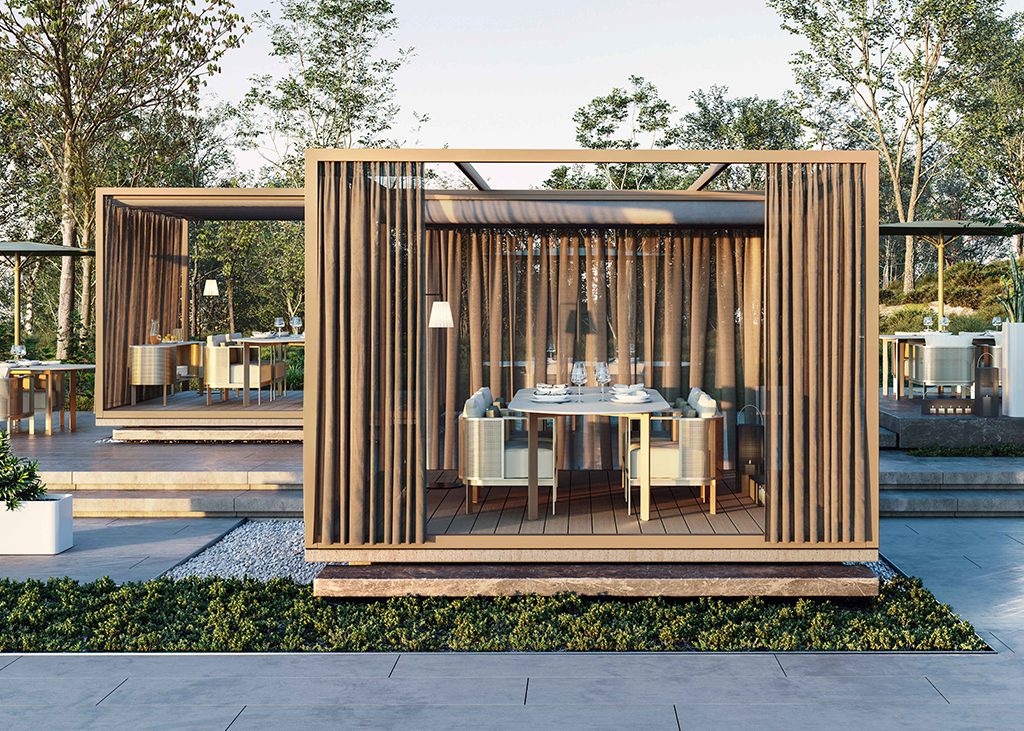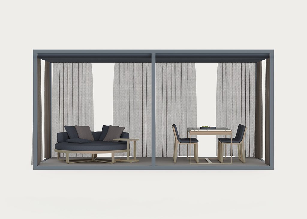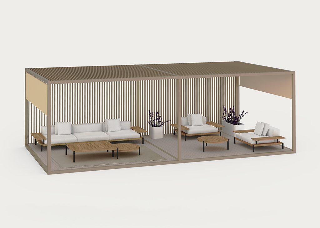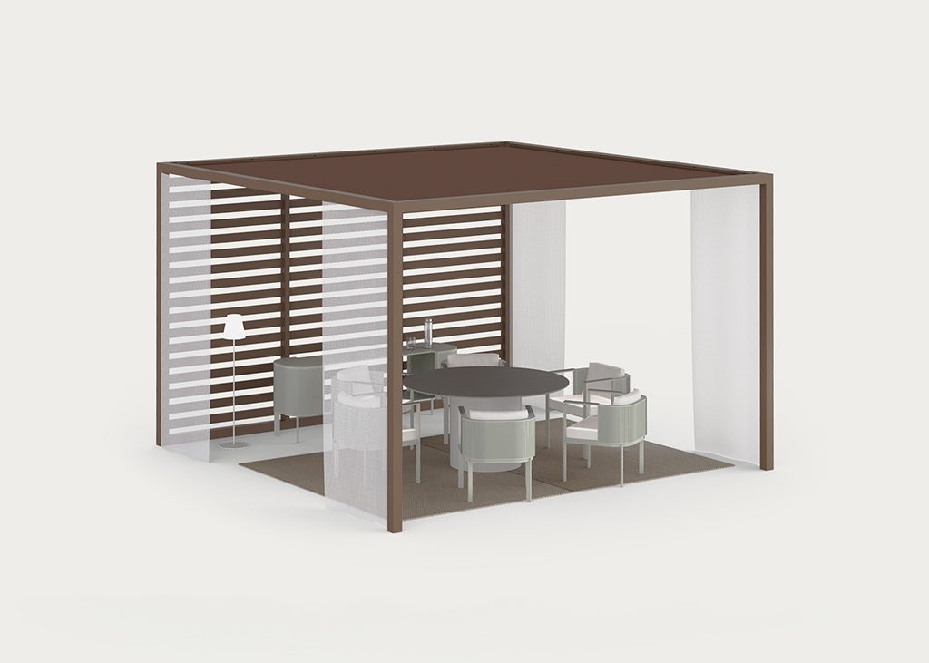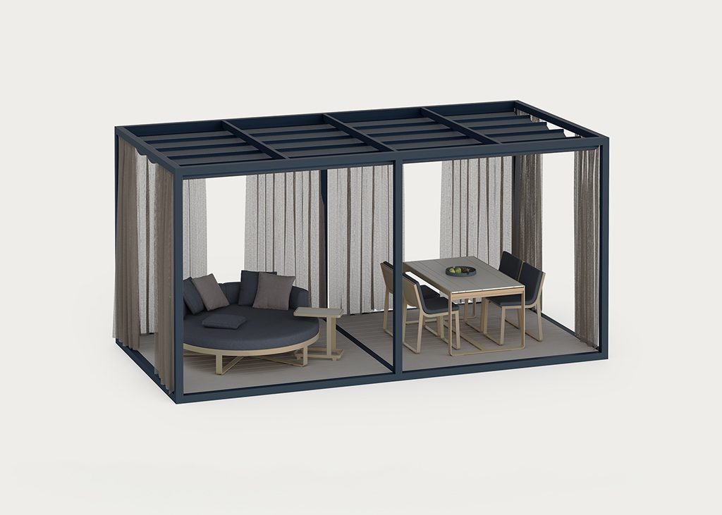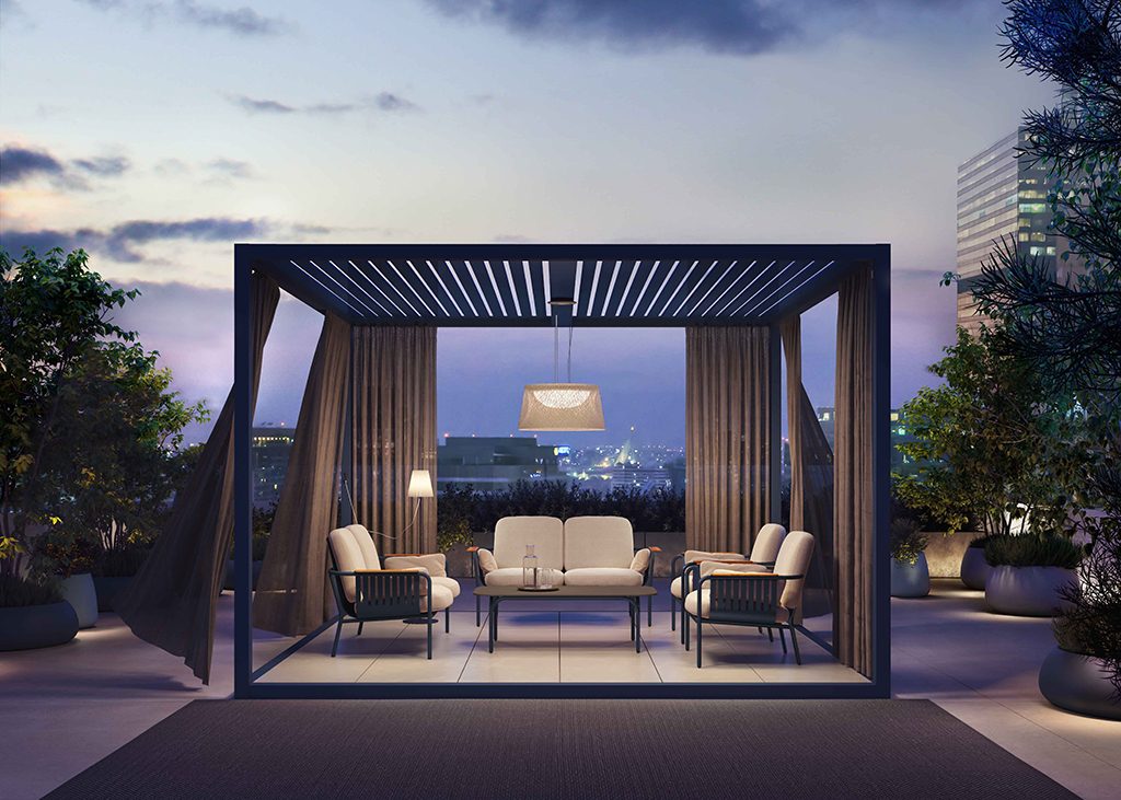 “We devised our OUTDOOR SPACES as a concept closer to architecture than to furniture.” “GANDIABLASCO was a pioneer in creating aluminum PERGOLAS in a contemporary version.”