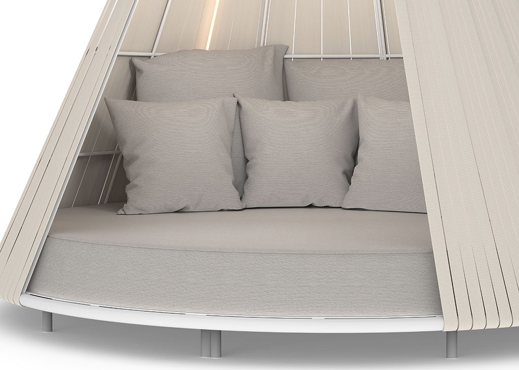 The design of CONO not only seeks to provide an intimate and cozy space, but also focuses on the quality of the materials used, such as aluminium. This way, it guarantees both the privacy of the user and the durability and excellence of the product.
