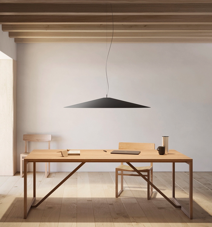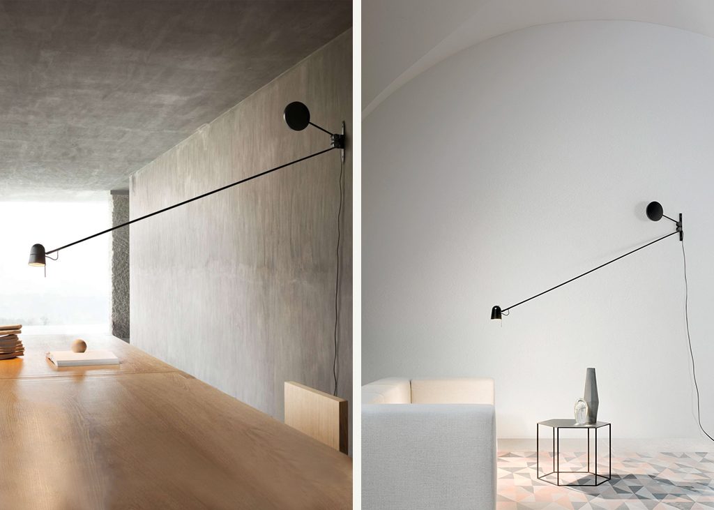 An object that seems to defy the laws of physics. Positioned as desired in space, the essential Counterbalance LED lamp, with its position variation, suggests the dynamic equilibrium of a sculptural mobile. Equipped with a fluid balancing system using gear wheels, the counterweight compensates for the movements of the long arm and ensures stability of the diffuser. The unit is produced in matte black or white painted steel, with an aluminium cap.