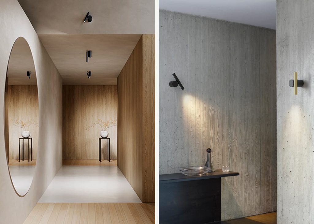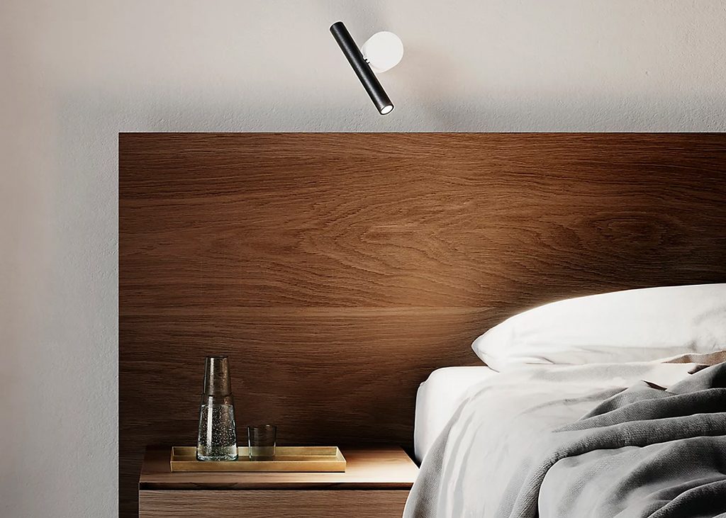 The structure is composed of two parts: the cylinder attached the wall or the ceiling and the spotlight, with a length of about 18 cm, formed by an extruded aluminium module. The two parts are connected by a mechanical joint that allows the light source to bend and rotate on the central base, adjusting the direction of the light. This freedom of movement makes Doi wall/ceiling extremely versatile and ready to respond to any installation requirements: a reading lamp placed by the headboard of a bed, or a perfect solution to light a corridor or a museum display, when attached to the ceiling or along a wall.