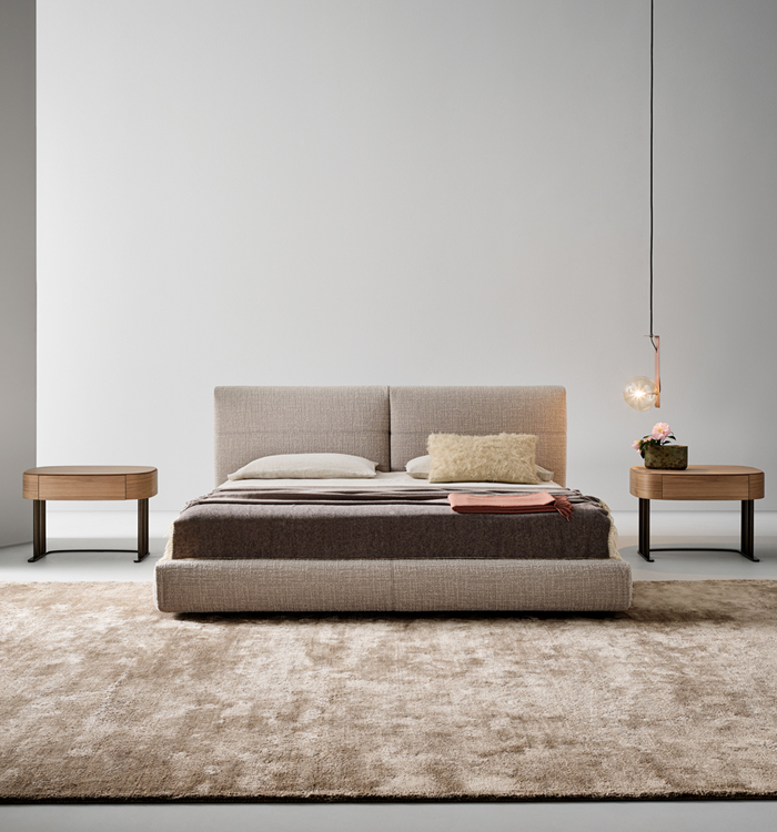 Flatiron fully satisfies a multiplicity of roles. A presentational desk, writing desk, table: in every guise it comes across as a significant element thanks to the powerful sculptural expression of the harmonious, rigorous and elementary shapes and volumes. The shape of the body is a reference to the famous Flatiron Building skyscraper in New York: with a new formal line of semi-abstract inspiration, the softness of the surfaces and the shape of the rounded parallelepiped legs fit into the formal continuum of the wooden top with its organic lines. Flatiron's aesthetic lexicon gives it a leading role not just in the panorama of professional executive furniture, but also in prestigious representative dining and living environments. A characteristic feature of the Flatiron top is the metal insert, an extension of the leg which, in addition to its aesthetic function, can also perform a practical one: the insert has a cable slot that allows the desk top to be kept tidy.
