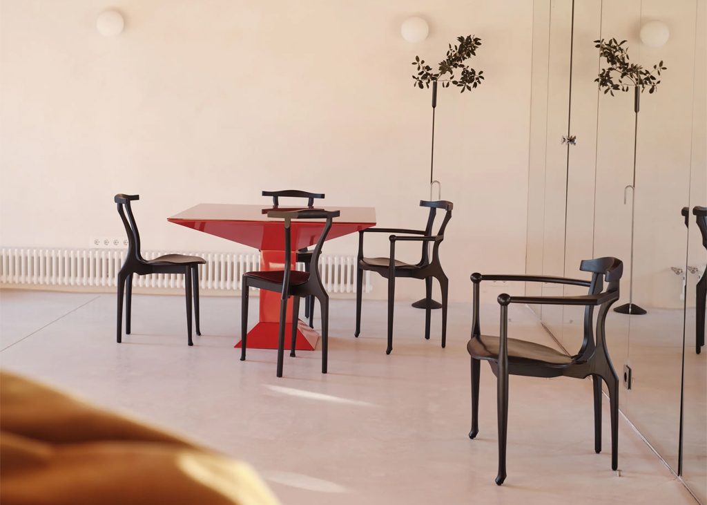 The Gaulino Easy Chair is a natural evolution of the iconic Gaulino Chair, it being a little lower and wider to allow for a totally new use. It fulfills the function of an armchair but is visually much lighter.