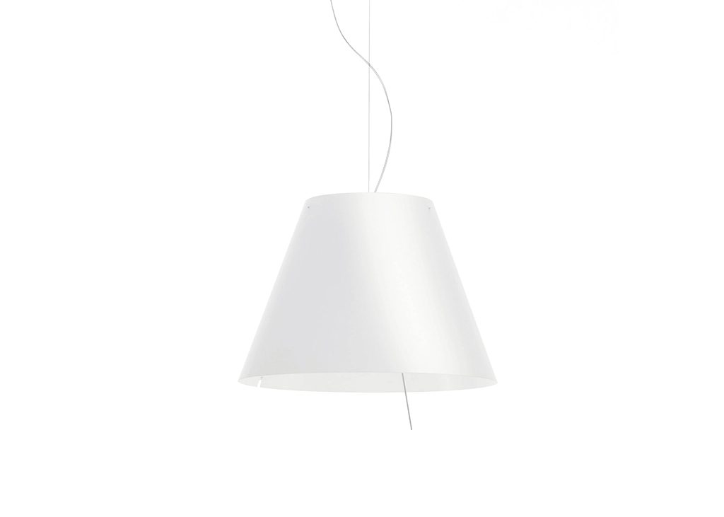 As visible as it is lightweight and balanced. The thin polycarbonate shade emits a pleasant glow that brings warmth and brightness to domestic and public spaces.