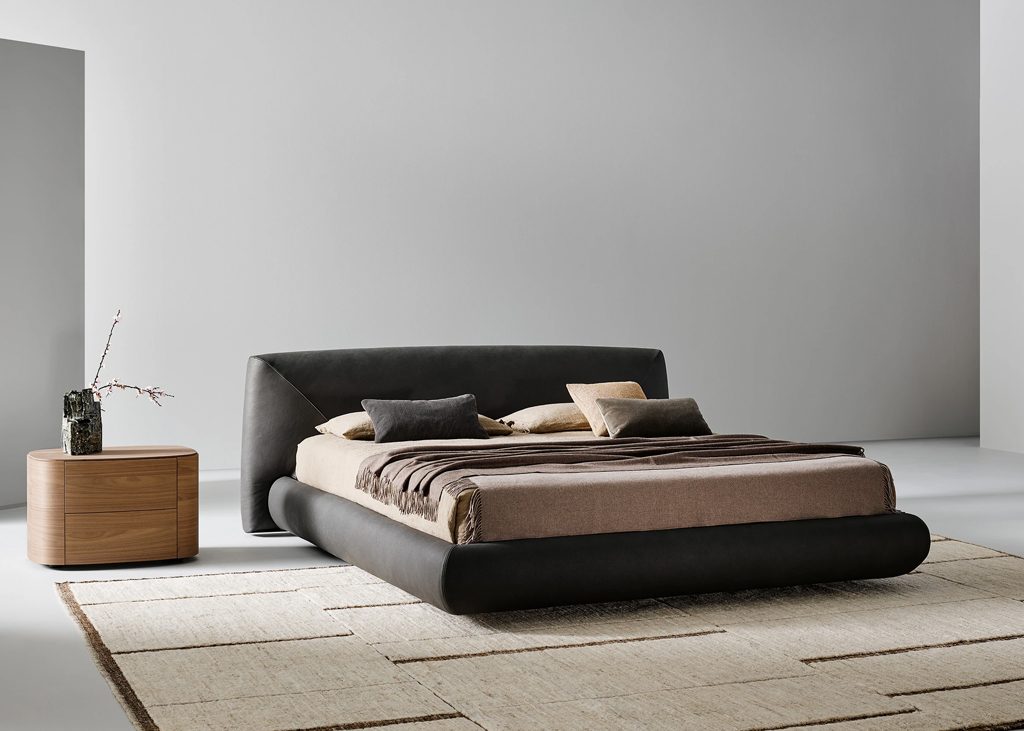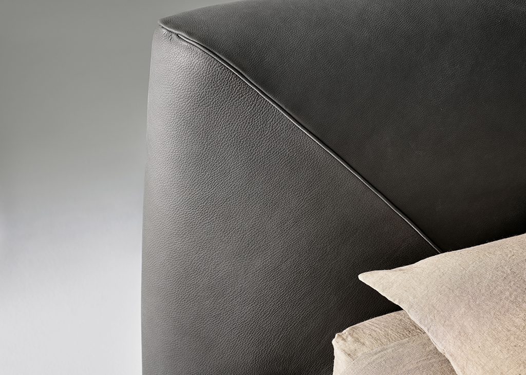 The upholstery, available in fabric, leather or eco-leather, enhances the design of the piece. In leather versions, the volume appears more compact and defined; fabric, on the other hand, emphasises softness, creating a more relaxed and welcoming feel. Holden introduces an essential language to the sleeping area, composed of a few defining elements that create a precise balance. Its simplicity is only apparent: every detail stems from careful formal research and reflects a deliberate design choice.