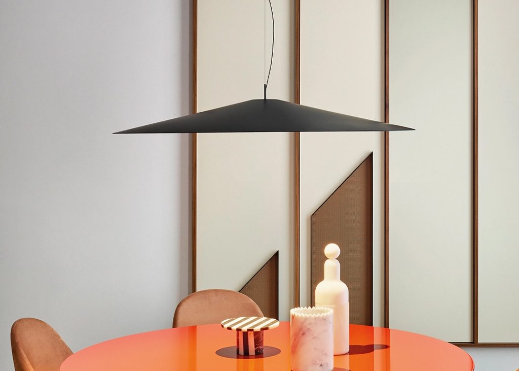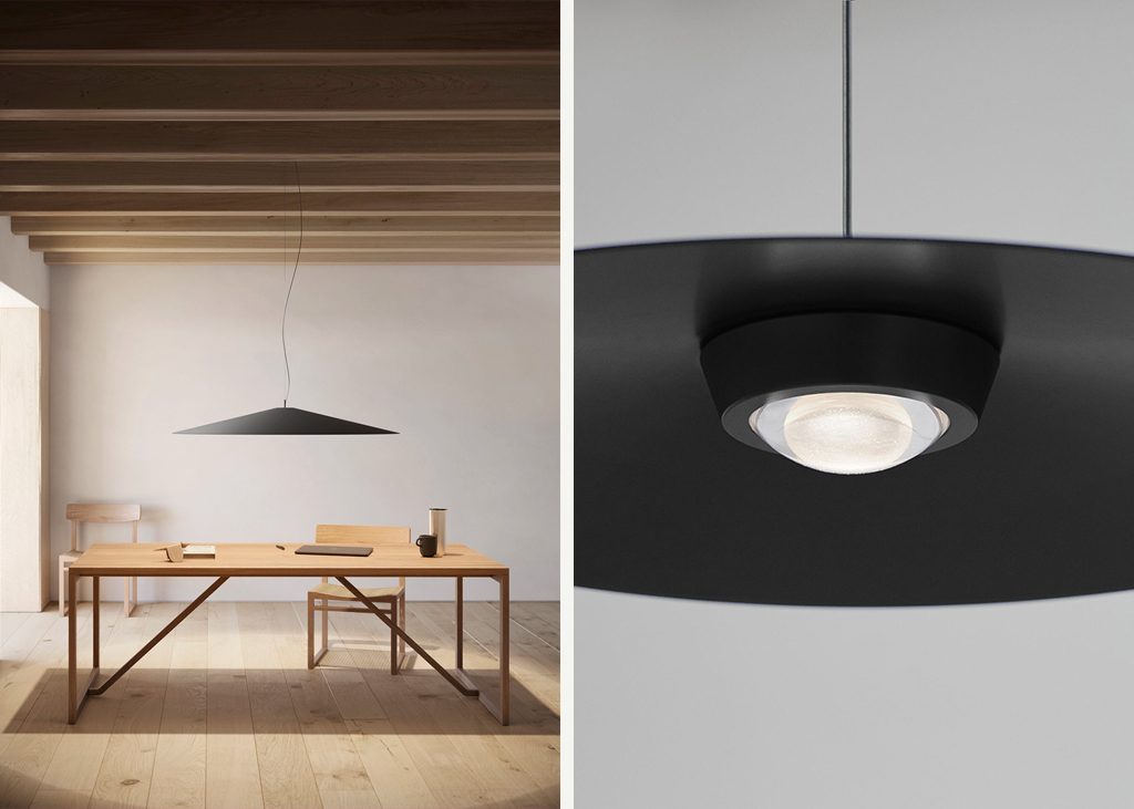 Elegance and purity in form characterise the “Koinè” family of pendant lights, named for its meaning of “shared language” and for its shapes which make it extremely versatile. The light source features a specially designed mineral lens. The light beam distributed by the lens is homogenous and distinct, a broad cone of light with clearly-defined edges.