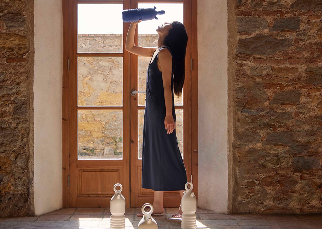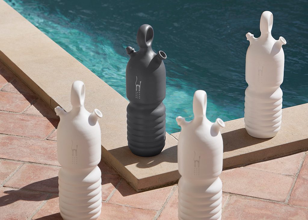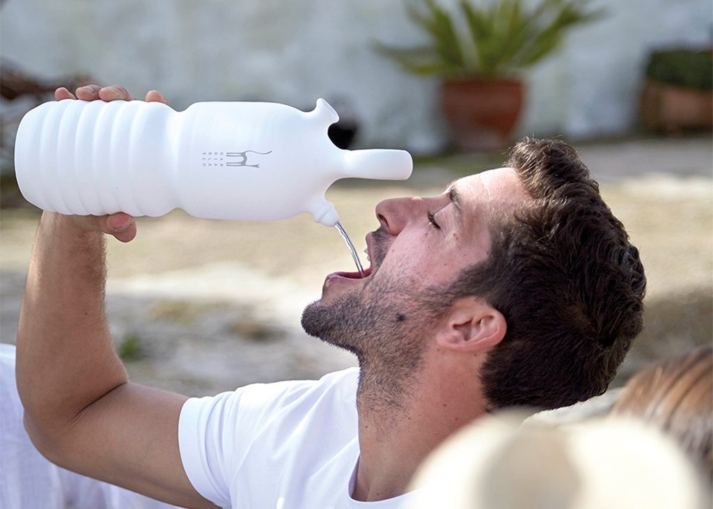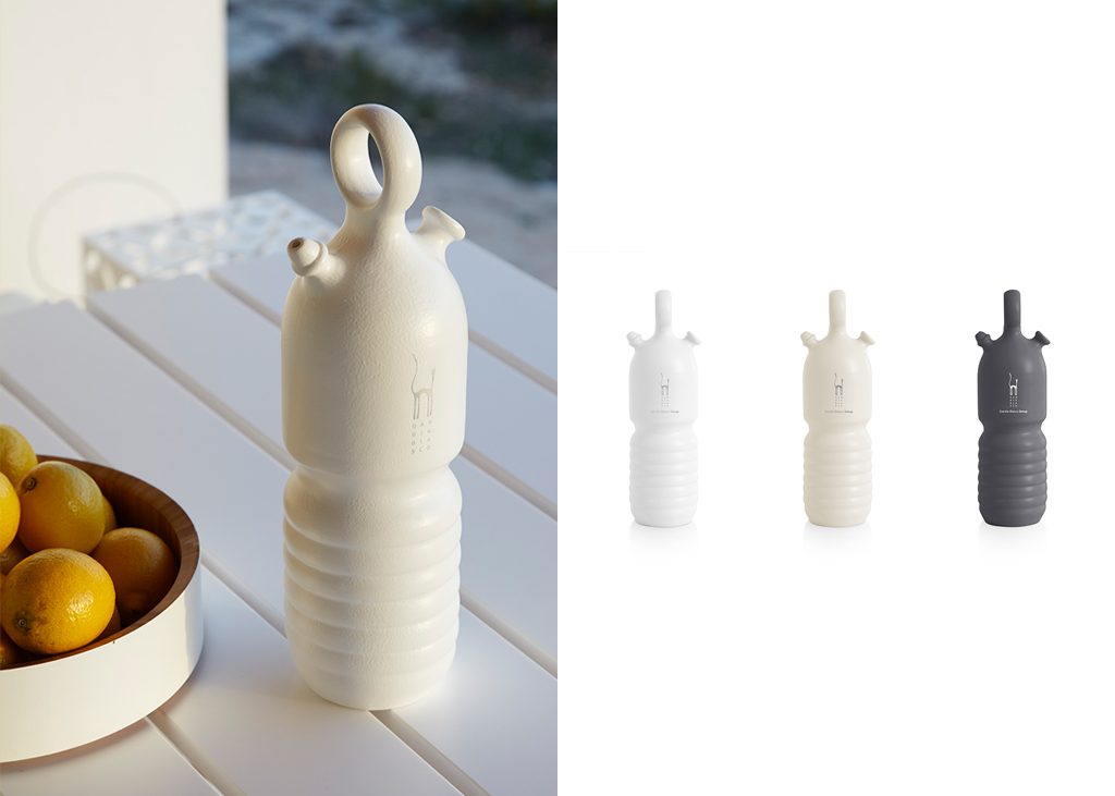 “La SIESTA is a white terracotta bottle that combines the look of a 1.5 Litre water bottle with the advantages of a traditional botijo (porous clay container for water). A different way of drinking.”