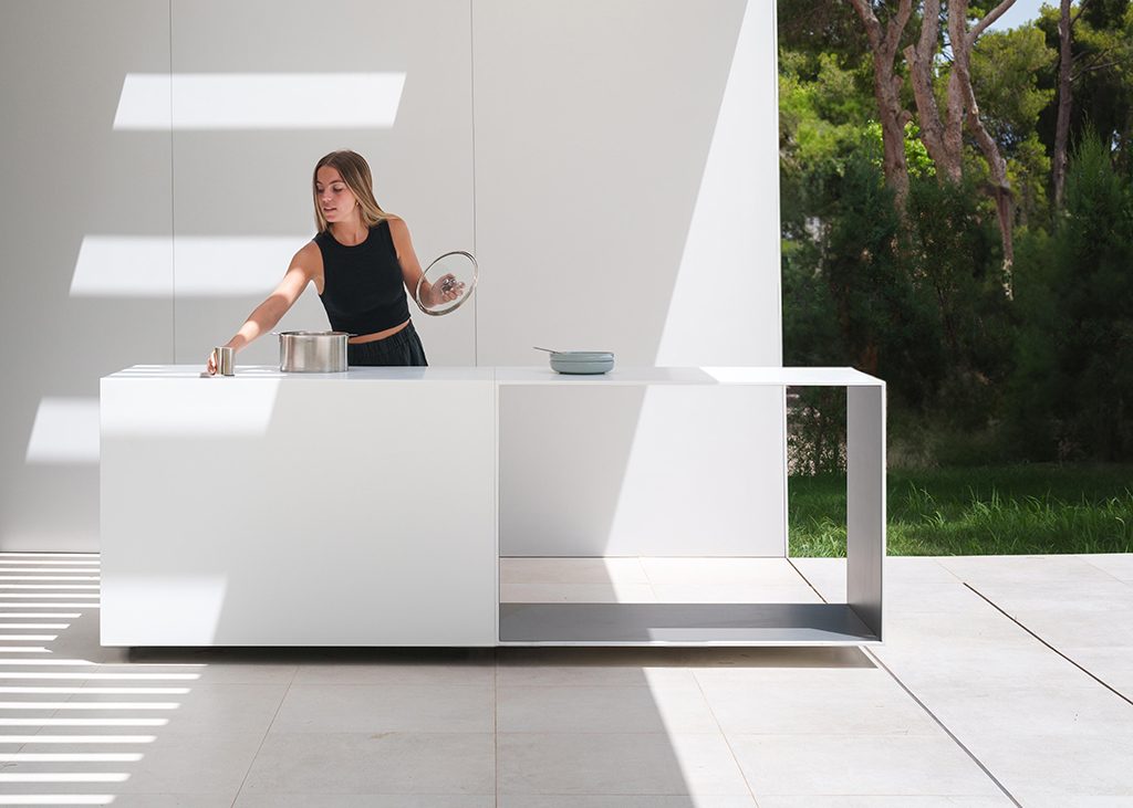 The new NEDRA outdoor kitchens are a design born from the collaboration between GANDIABLASCO and Porcelanosa, signed by the Valencian architect Fran Silvestre.