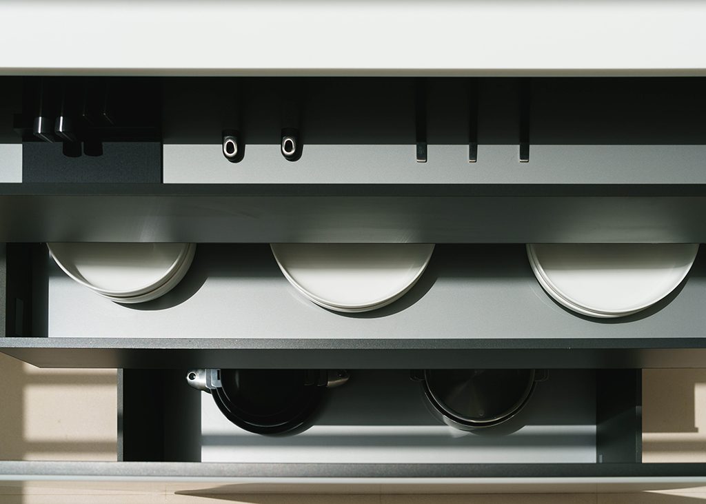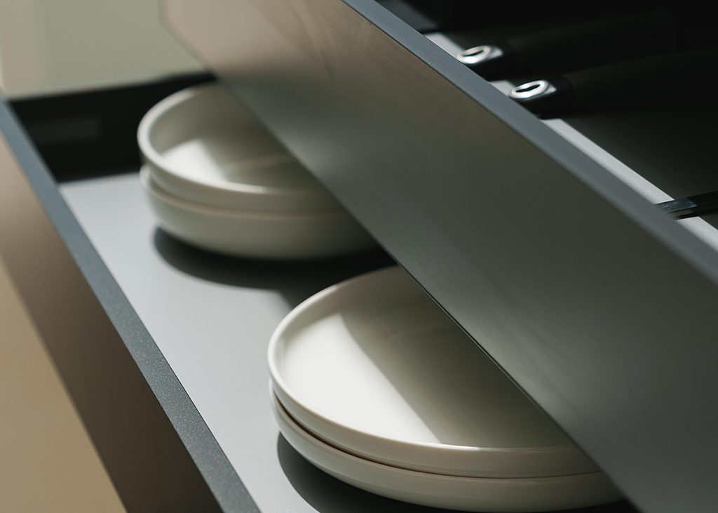 A very innovative proposal at an aesthetic and technical level, due to its essential and light design, which incorporates a novel table-like module as well as a hidden induction system, in which the hobs are integrated into the countertop providing a uniform surface when not in use. NEDRA is a kitchen born not to be perceived as such, which blends into the environment and looks like just another piece of furniture, so when it is revealed as a kitchen it is surprising.