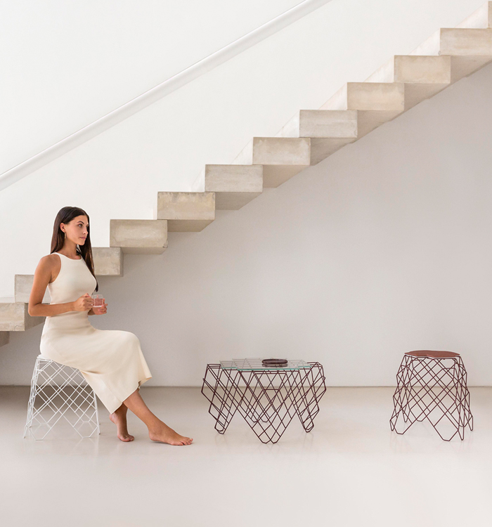 “An afternoon get-together with friends on a Mediterranean beach, the perfect place for relaxing on this covered sofa with an aluminium frame and vinyl fabric overhead shade.”