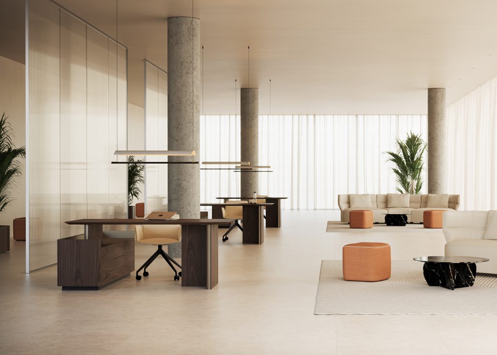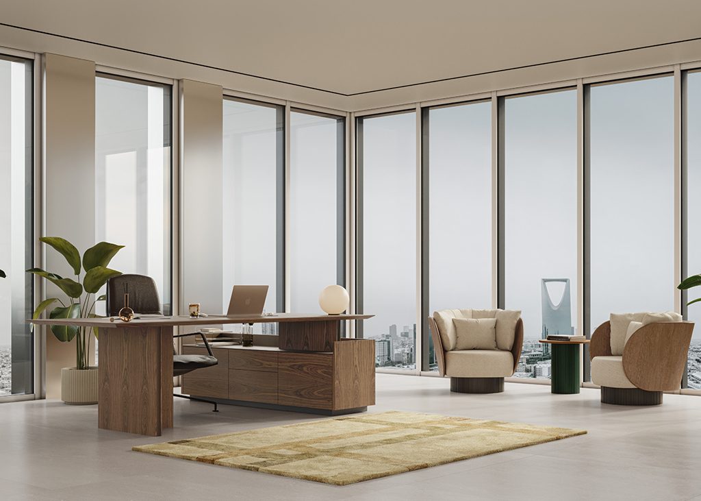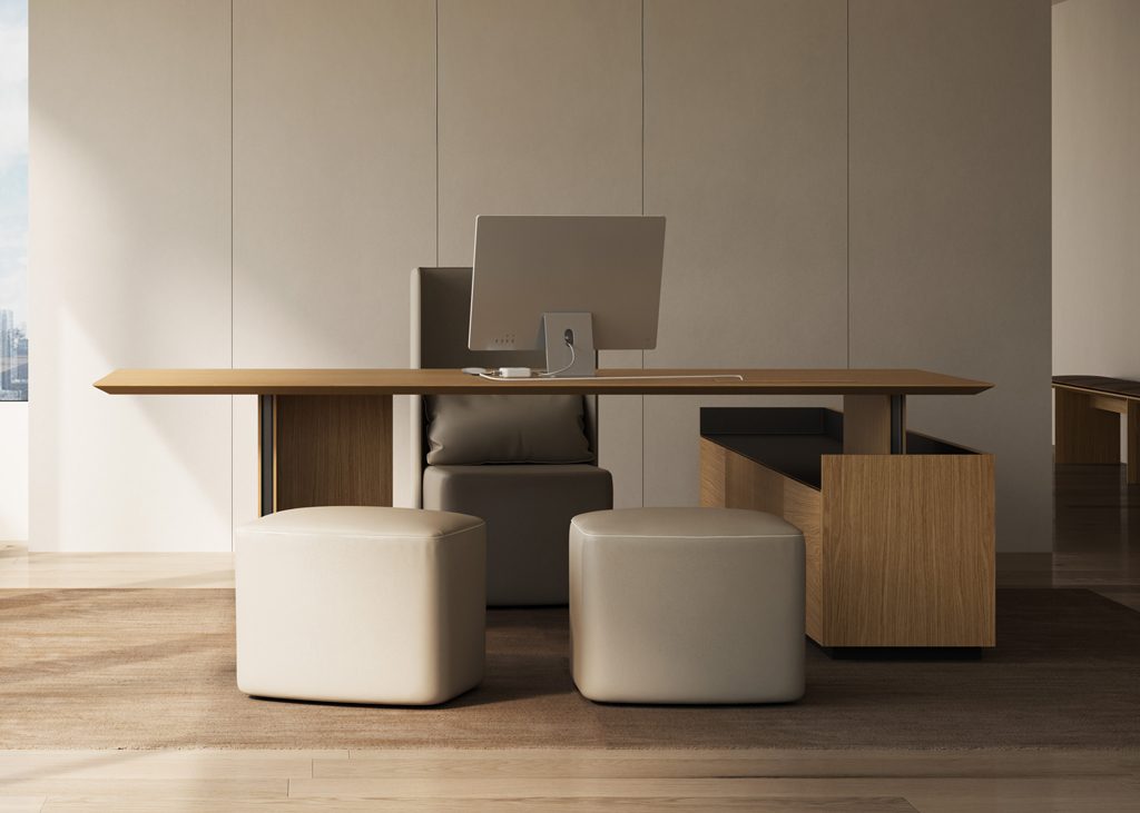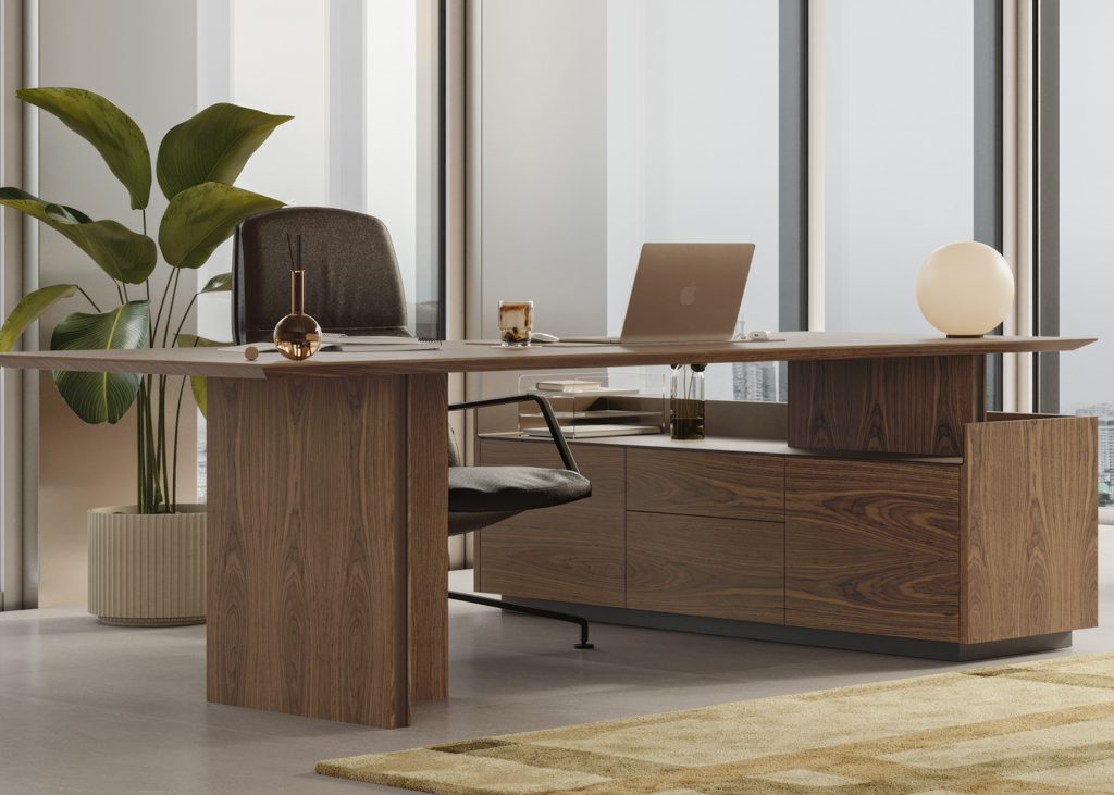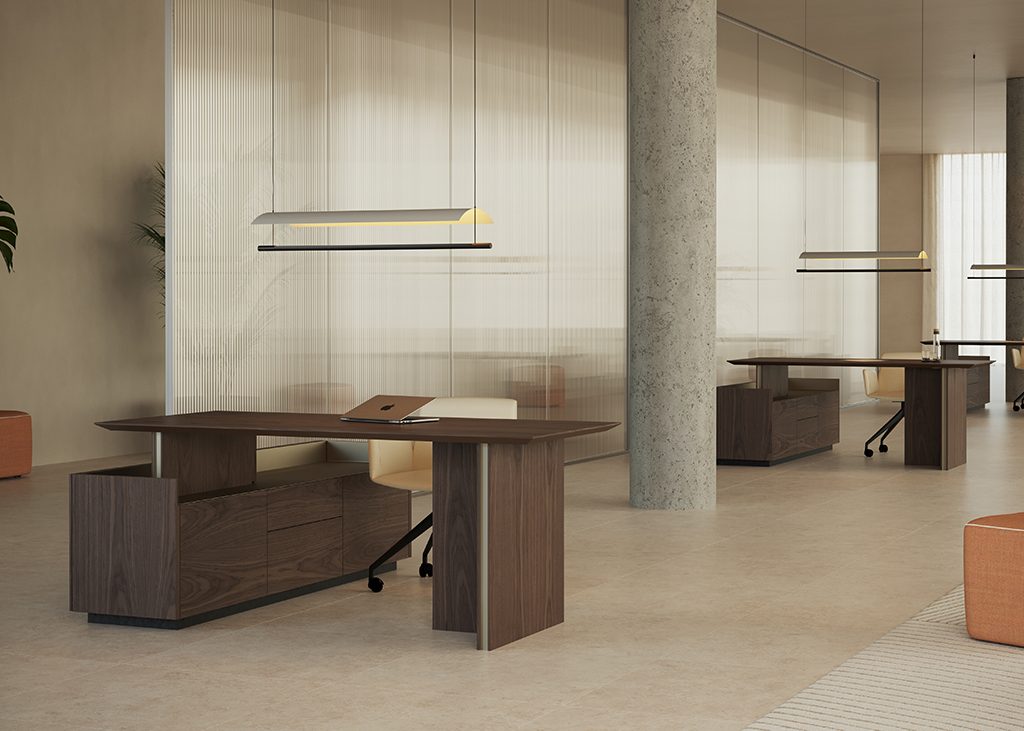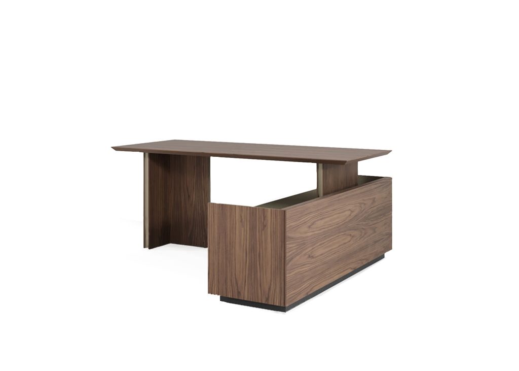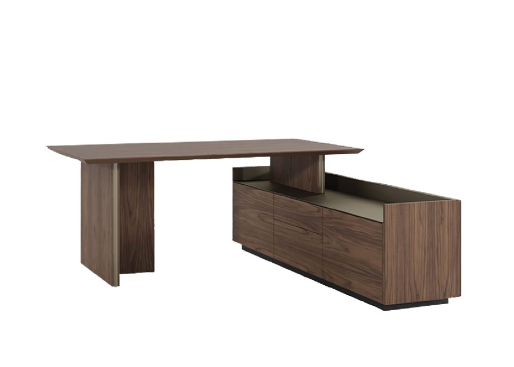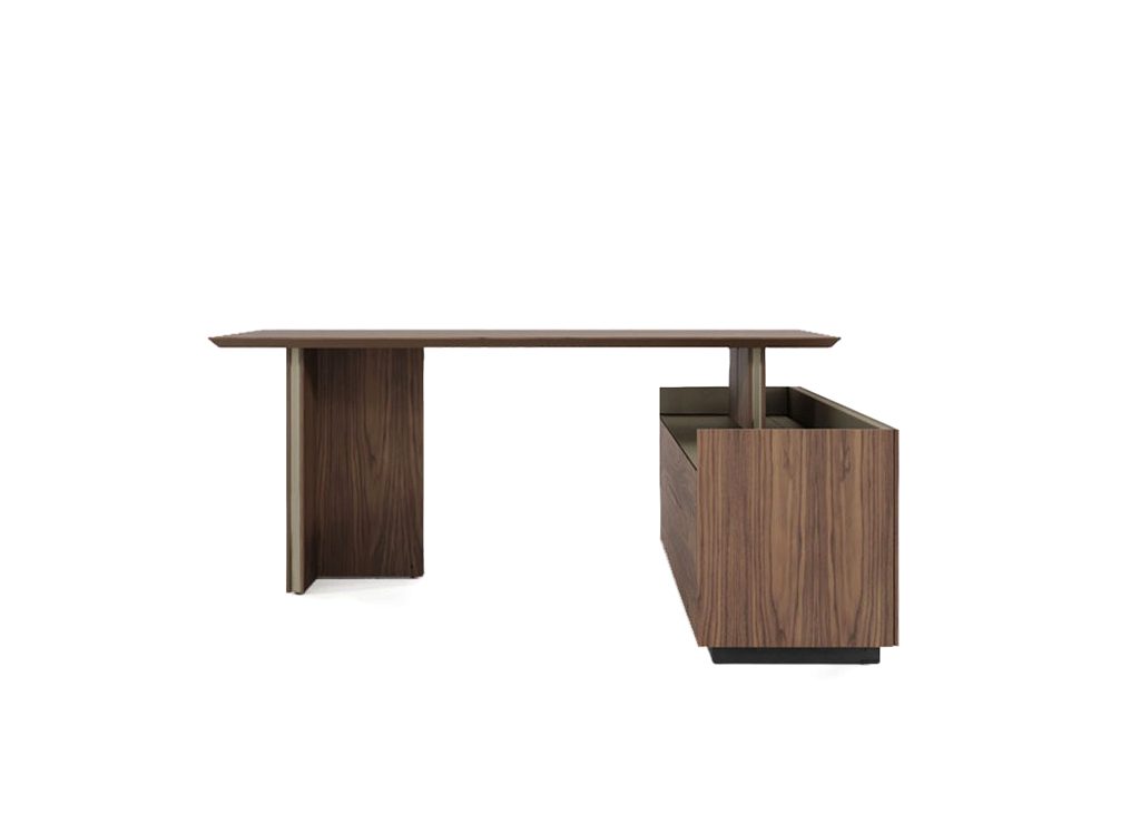 Executive desk extension of the Stockholm collection of sideboards. Awarded with the Red Dot 2015 and characterised by the elegant aesthetics provided by the 3mm aluminium cover of the top.