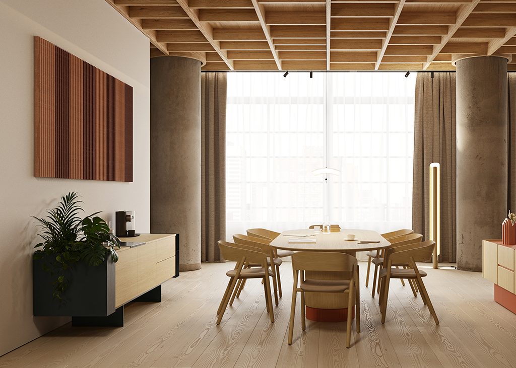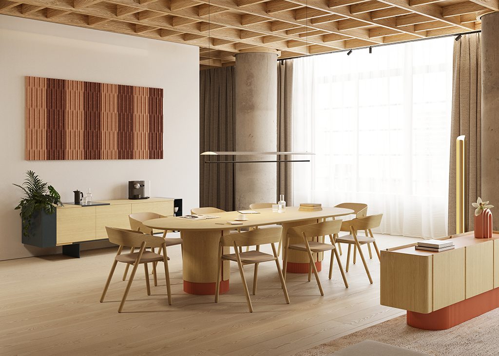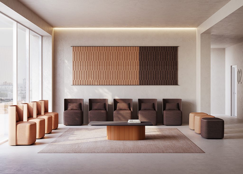 Creavalo and Mario Ruiz, with the collaboration of Punt, present this year a new collection of products that redefine the relationship between design, art and sustainability. The designer, in a nod to his iconic Stockholm family of sideboards, has created a system of acoustic panels made from recycled materials that synthesises the characteristic details of the collection to give rise to a functional and sculptural proposal.