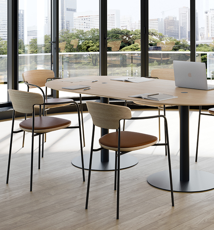 A collection of sideboards and TV benches with an exclusive design on the front consisting of horizontal bars hiding the composition besides serving as handles for doors and drawers. A piece of furniture resting on a plinth, on adjustable feet or hanging from optional wall-fixing devices. The door elements include a height-adjustable shelf.
