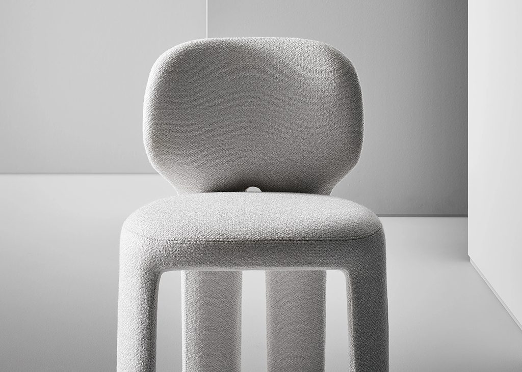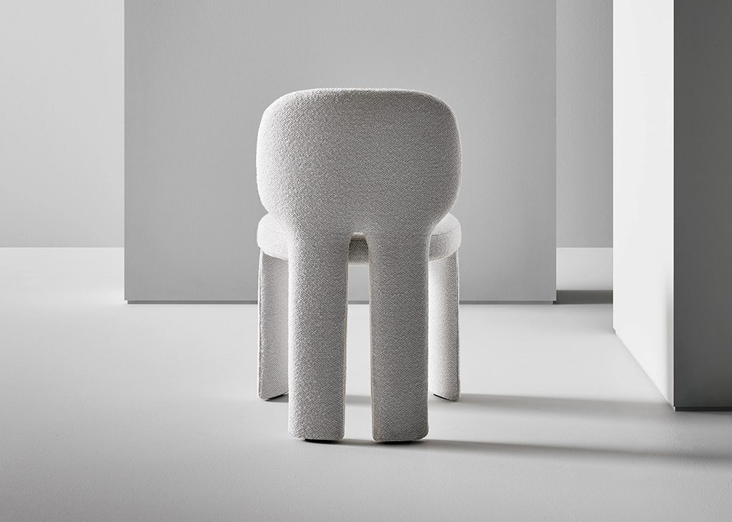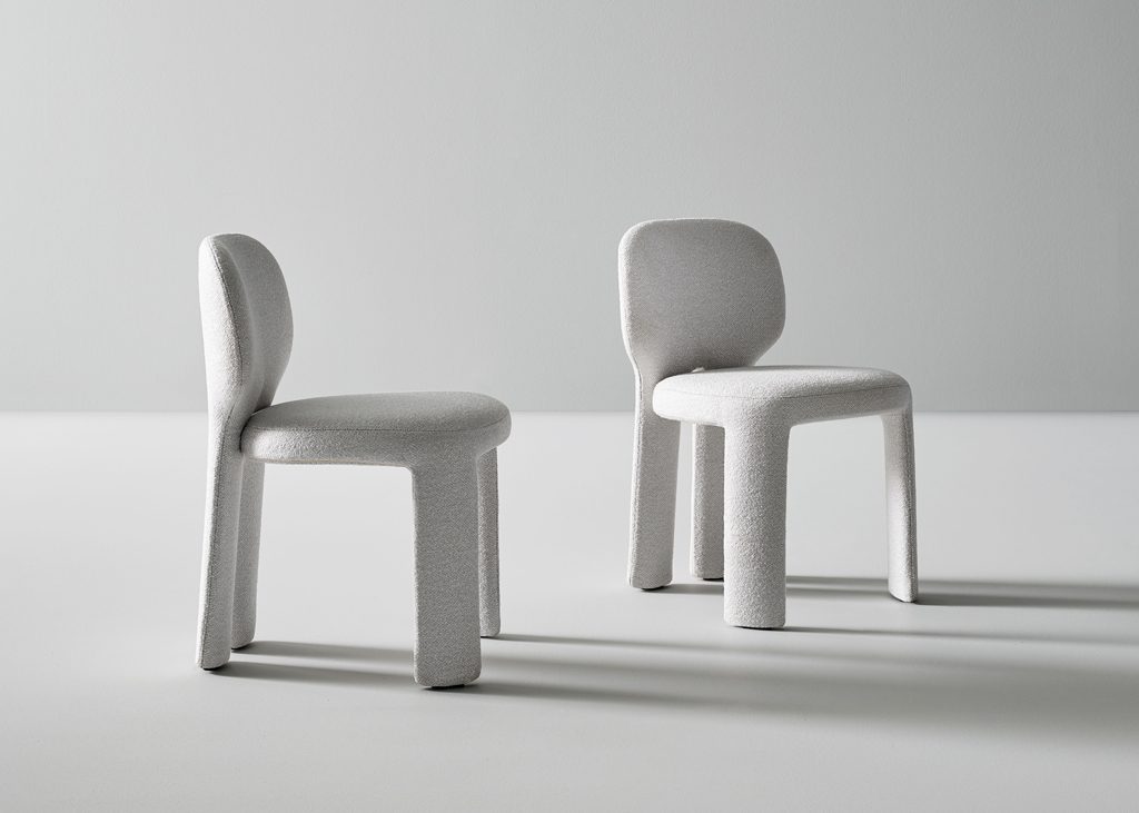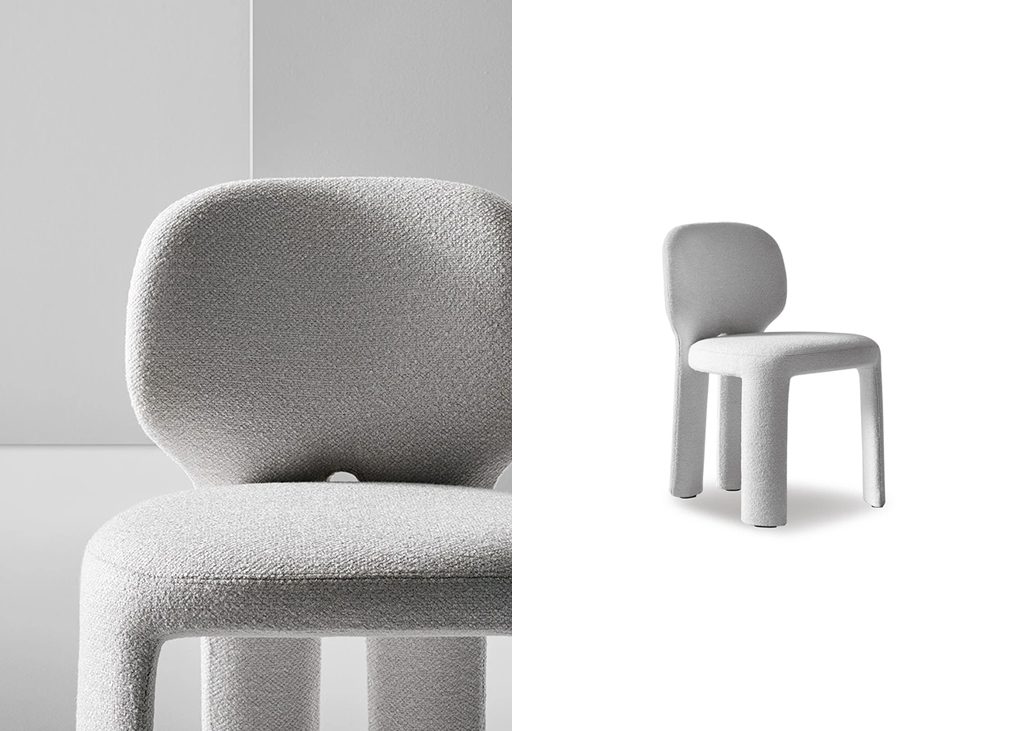 Teia stems from an idea of absolute essentiality: a few unexpected and original details make the chair immediately recognisable. The strength of the design lies in the rear view, where the legs extend as a natural continuation of the backrest, an element that breaks the regularity of the design and gives the form a dynamic and almost organic quality. Teia is fully upholstered, a feature that enhances the continuity of its form and emphasises a sense of softness and comfort. Teia is a versatile solution, suitable for a variety of settings: around a domestic dining table, as well as in meeting rooms, restaurants or hospitality spaces.