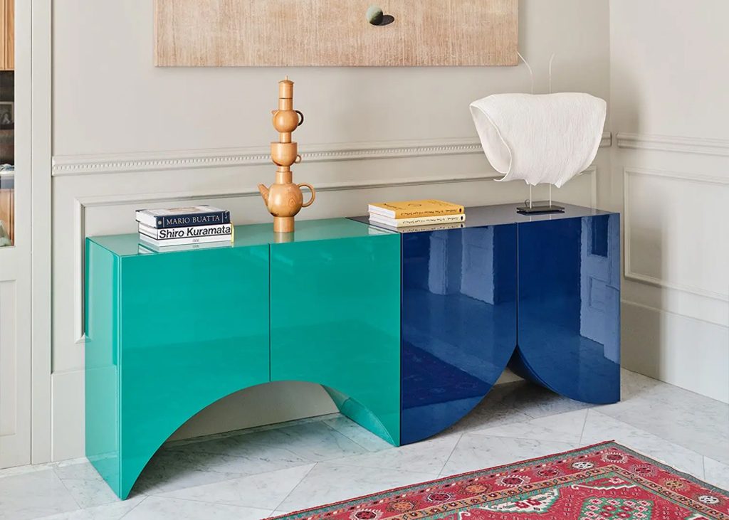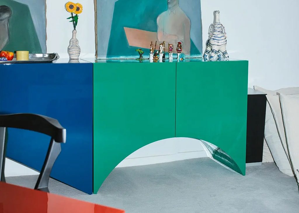 Bridges est une collection d'armoires conçue par Muller Van Severen. MVS a développé ces armoires à partir de sa série de vases « Wave ». Les silhouettes des vases ont été transposées dans des armoires faites à la main, dotées de bases découpées uniques qui transcendent leur fonction. Leurs couleurs raffinées et leurs finitions brillantes soulignent leur structure, qui se distingue par sa beauté sculpturale. Seules ou ensemble, les armoires Bridges créent une architecture colorée, vibrante et spacieuse, et bien sûr pleine de personnalité.