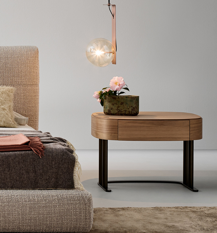 Le canapé modulaire Grant se compose d’une succession de courbes amples et continues : modules semi-circulaires, éléments en demi-arc, chaises longues, péninsules et poufs s’assemblent pour créer une vaste gamme de configurations, conçues pour s’adapter à différents contextes et modes d’utilisation. Chaque module, dessiné par des lignes courbes ininterrompues, sans angles ni ruptures, invite à un agencement libre et favorise la convivialité, en rapprochant les personnes et en rendant les interactions plus spontanées. C'est pourquoi Grant se prête également très bien à une installation au centre d'une pièce, où son développement compositionnel aide à organiser l'espace et à définir des zones d'interaction sociale dans les grands salons, les halls d'accueil ou les espaces d'accueil. Disponible avec un revêtement en tissu ou en cuir, Grant repose sur un piètement luge en métal, en retrait par rapport au volume rembourré afin d'alléger visuellement la composition d'ensemble et de mettre en avant la douceur de ses formes.