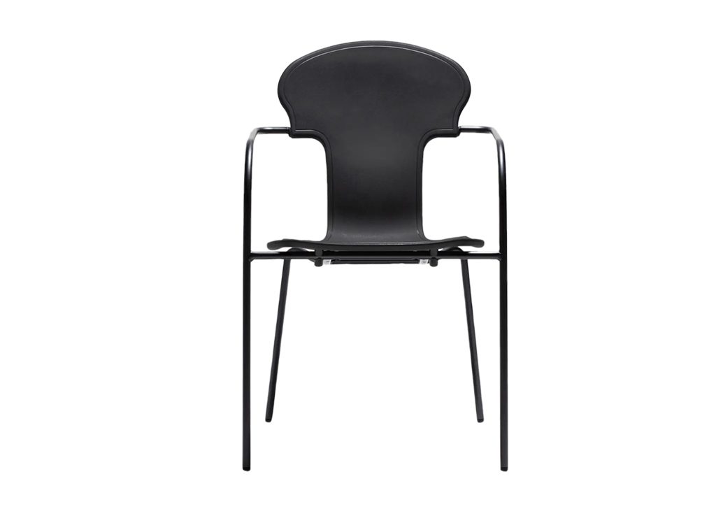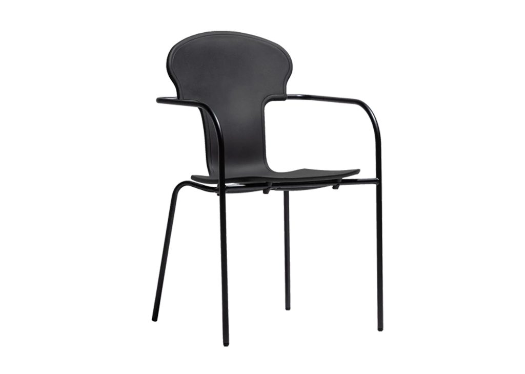 En 2008, Oscar Tusquets a revisité son célèbre modèle de chaise Varius et a créé cette version plus petite et modernisée, présentée dans une finition anodisée noire avec une assise en polypropylène noir moulé par injection.