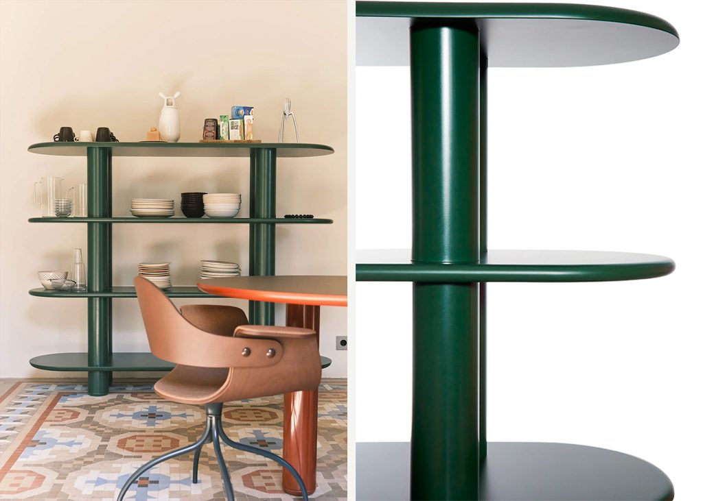 Les étagères ECLIPSO de Jaime Hayon offrent une solution polyvalente et dynamique pour organiser et définir les espaces. Inspiré par les formes arrondies et la magie tranquille d'une éclipse lunaire, ce système ouvert sert à la fois de rangement et de séparateur d'espace, créant ainsi un rythme et une fluidité dans les intérieurs. Fabriquées à partir de colonnes en aluminium Hydro Low Carbon recyclé à 95 % et d'étagères en MDF de 3 cm avec une finition laquée satinée, ces étagères sont durables et conçues pour un usage quotidien. Des patins en nylon satiné assurent la stabilité et protègent les sols. Disponibles en vert monochrome, rouge oxyde et beige, et en trois hauteurs (étagères à 2, 3 et 4 tablettes), ces étagères s'adaptent parfaitement aux environnements résidentiels et hôteliers, transformant un rangement pratique en un élément dynamique qui embellit la vie quotidienne avec élégance et simplicité.