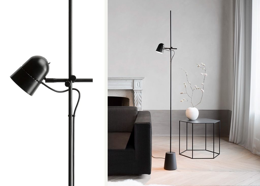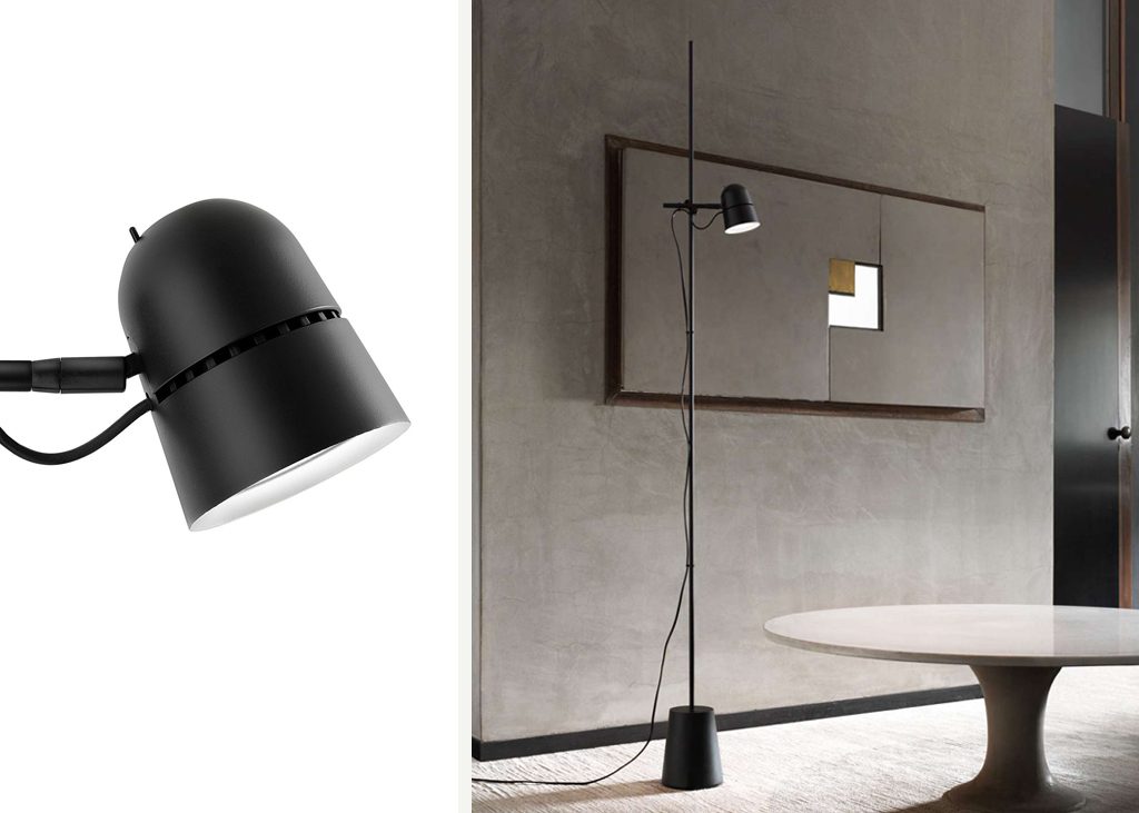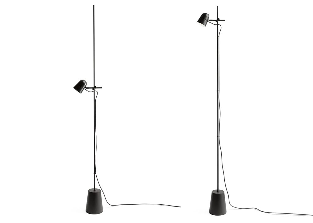 Dans la version lampe au sol, Counterbalance conserve la caractéristique du capuchon en aluminium , réglable en hauteur grâce à un simple mécanisme coulissant sur la tige.