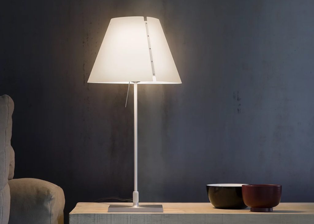 Une présence discrète mais solide, Costanzina peut être facilement placée dans n'importe quelle pièce, sans limitations stylistiques. L'abat-jour en polycarbonate s'équilibre sur seulement deux points de la structure en aluminium. En cas de choc, le store peut se balancer mais ne tombe pas.