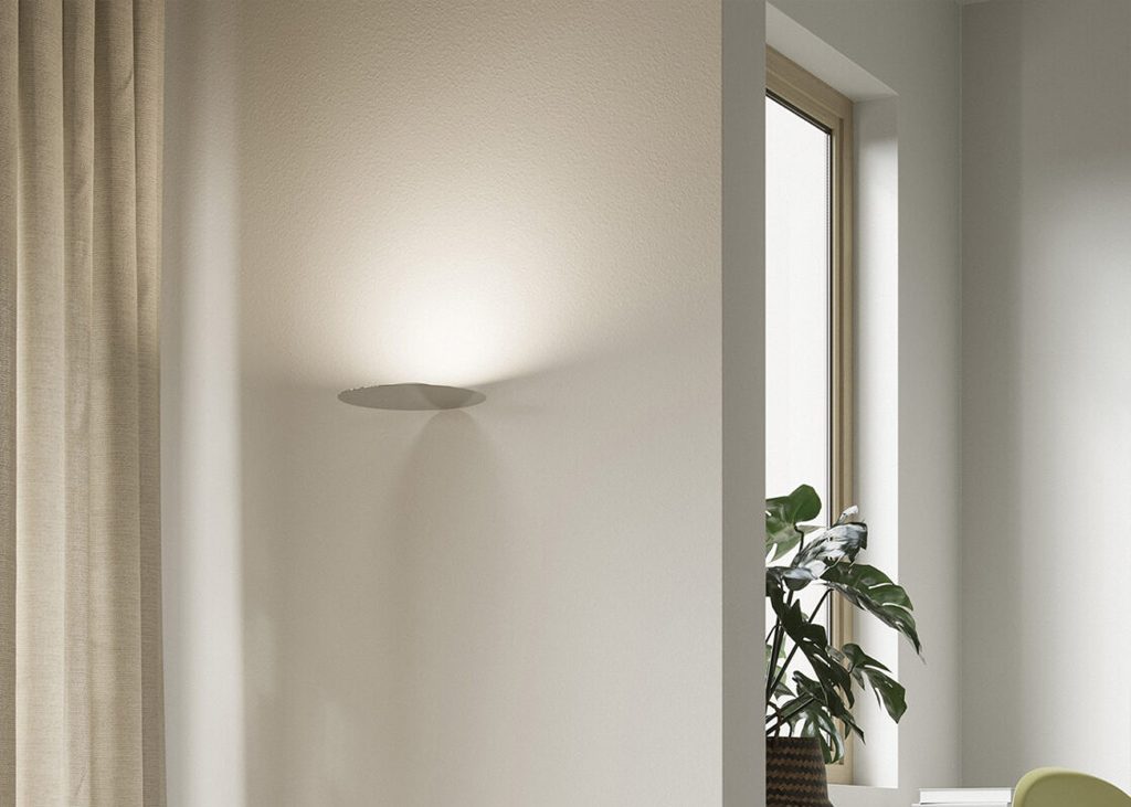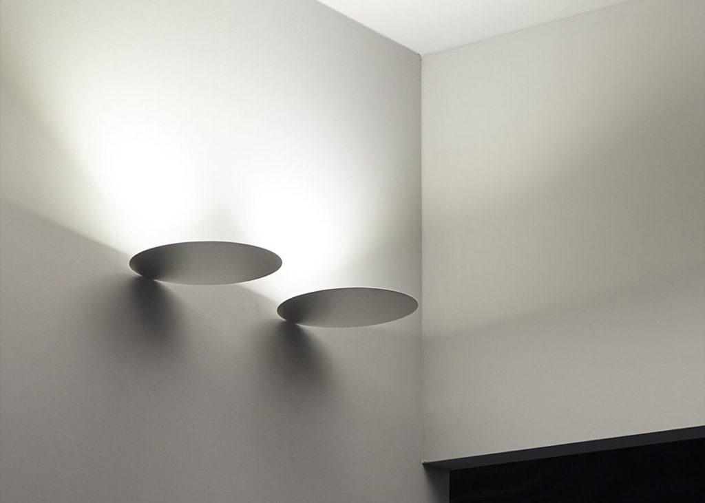 La version murale de Millimetro se distingue par sa forme et son effet lumineux surprenant. Elle se compose d'un disque métallique au fini miroir installé à proximité du mur. La source lumineuse LED contribue à créer une atmosphère chaleureuse et reste invisible. Le corps de la lampe semble ainsi flotter dans l'espace, s'intégrant au mur lui-même. Le modèle génère des jeux de lumière et de perspective captivants et raffinés dans l'espace environnant.