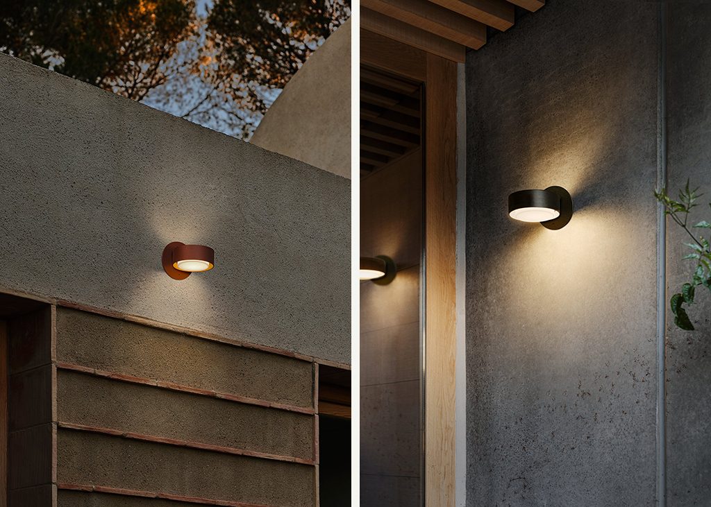 Avec l'idée d'étendre les possibilités pour l'extérieur, la collection Plaff-on! implique une nouvelle version murale extérieure de 6,2 pouces de diamètre dotée d'un support perpendiculaire pour projeter la lumière vers le bas tout en permettant à la lumière de circuler en douceur à travers le dessus ouvert. Comme pour le Plaff-on! standard, le diffuseur en verre soufflé des versions d'extérieur semble flotter, détaché de l'anneau en aluminium qui l'entoure. Sa lumière filtre à la fois vers le bas et vers le haut dans un halo lumineux, qui respire la simplicité et l'efficacité.