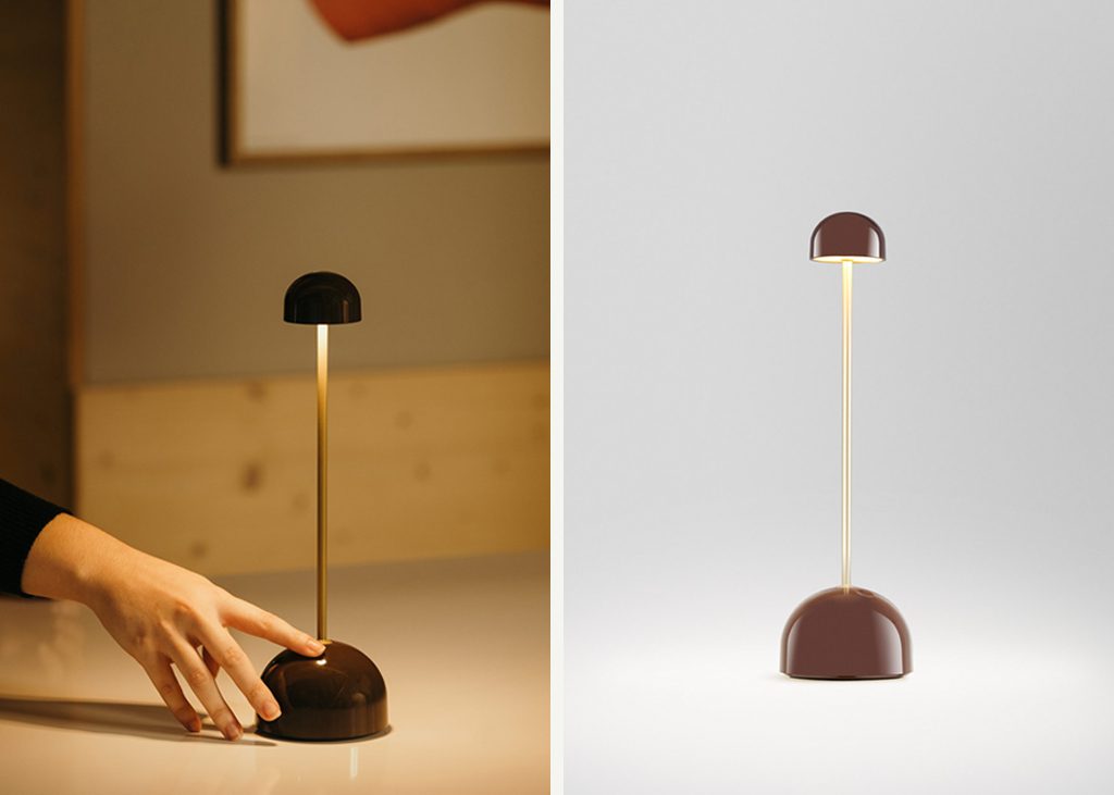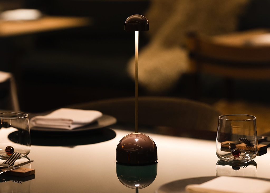 Doté d'un petit abat-jour opaque, le Sips illumine directement la table mais sans éblouir ni envahir l'espace. Sa base plus large assure la stabilité et comprend un interrupteur tactile avec trois intensités lumineuses. Il est disponible en deux teintes qui s'intègrent facilement dans les espaces culinaires et de loisirs : blanc chaud avec une tige argentée, et marron foncé avec une tige en finition dorée.
