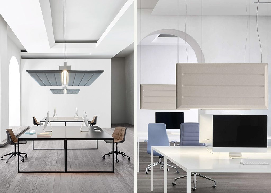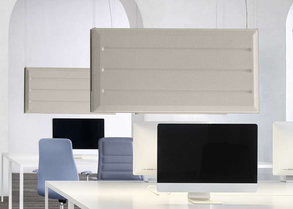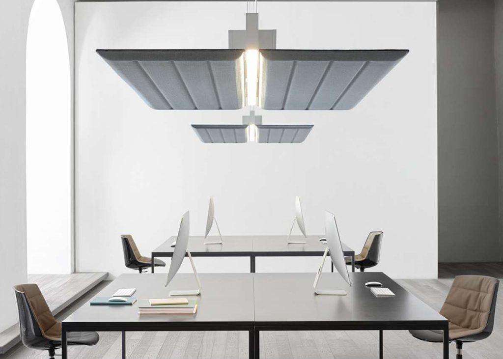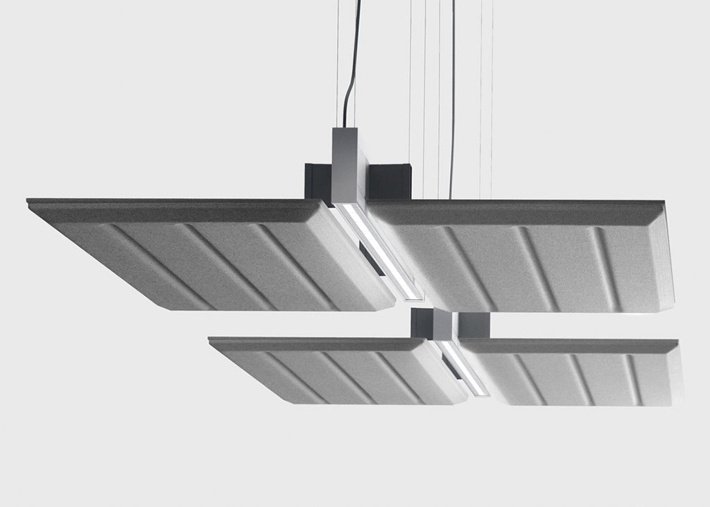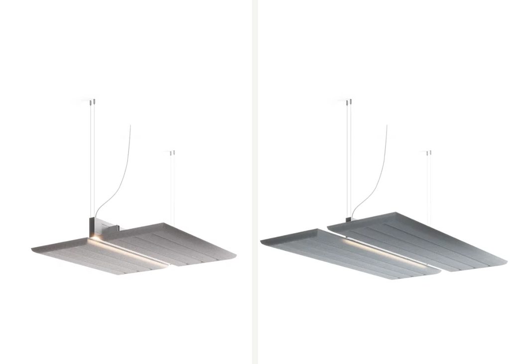 Une cloison, un plafond, qui devient étonnamment léger. Les suspensions Diade sont des solutions d'éclairage techniques qui offrent des performances élevées en matière d'absorption acoustique. Une lampe LED linéaire pour le lieu de travail ; un élément architectural modulaire capable de définir l'espace et de personnaliser le contexte. L'éclairage LED technique, idéal pour le travail, est directement orienté vers le bas et vers le haut par la ligne centrale, avec la possibilité de deux faisceaux, en fonction des besoins d'éclairage. Les panneaux acoustiques peuvent être positionnés verticalement ou horizontalement à l'aide d'un accessoire.