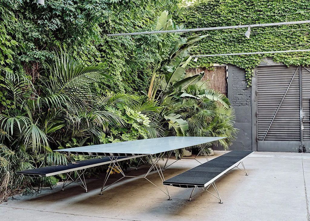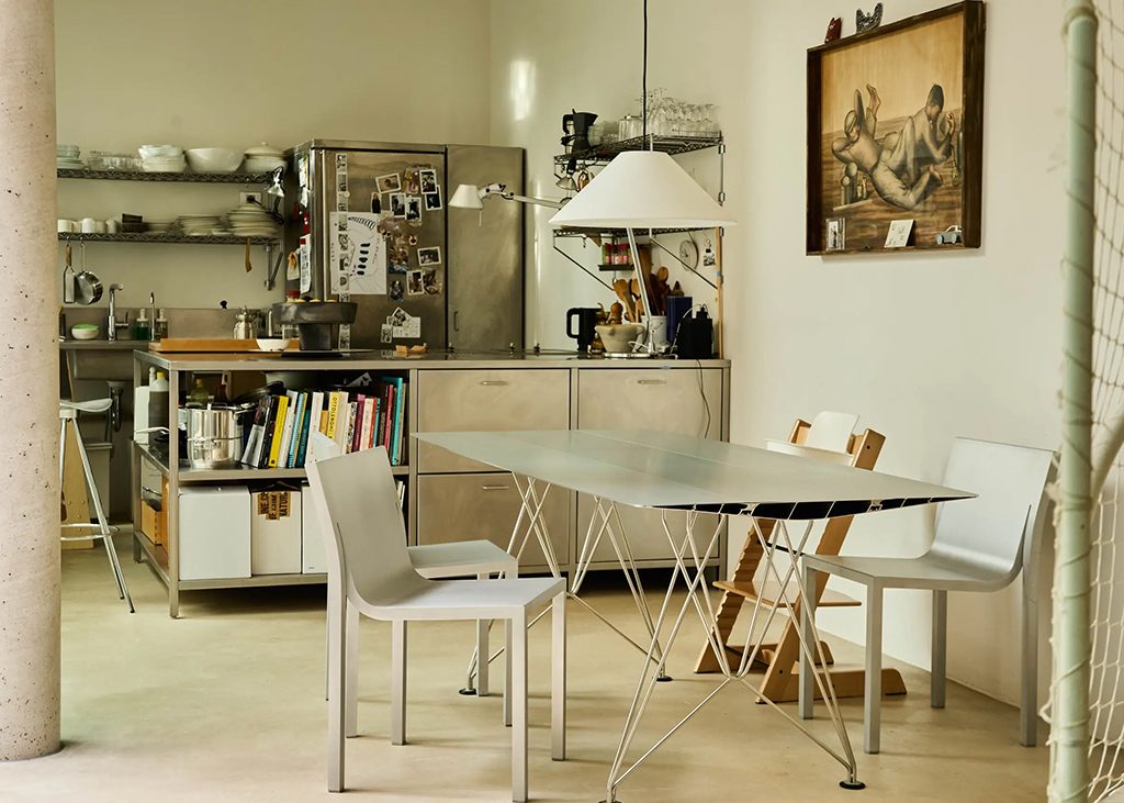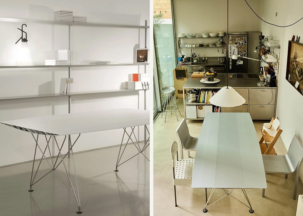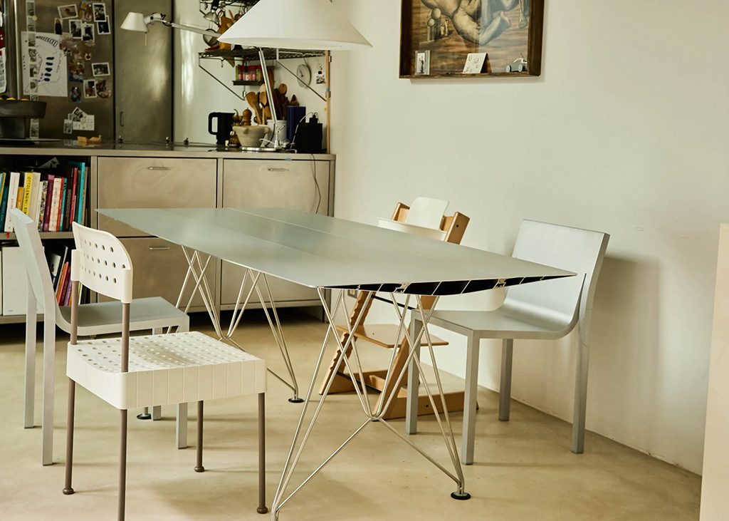 Conçu à l'origine en 2005, ce profil est fabriqué à partir d'aluminium recyclé à 95 % par Hydro. Il peut atteindre des longueurs allant de un à cinq mètres et se décline en trois largeurs et deux finitions pour le plateau (aluminium ou Forbo). Un kit de gestion des câbles est également disponible, avec un système électrique intégré comprenant une prise d'alimentation, une prise de données, une prise VGA et une prise stéréo. Ces tables sont solides, imperméables et légères, et leur apparence minimaliste est très équilibrée et bien conçue. Elles reflètent le caractère de Grcic et sa passion pour en dire plus avec moins. La table B a remporté le Red Dot Design Award en 2011.